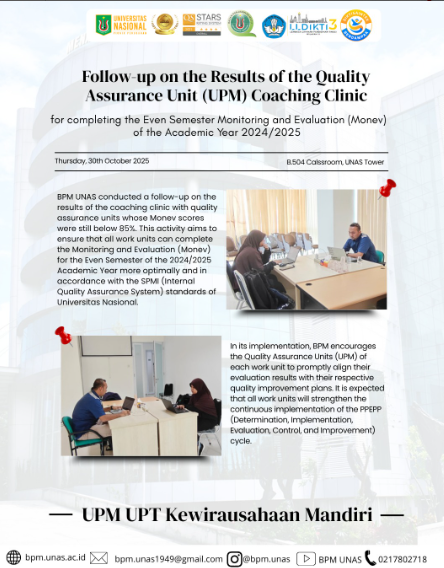 Follow-up on the Results of the Quality Assurance Unit (UPM) Coaching Clinic – for completing the Even Semester Monitoring and Evaluation (Monev) of the Academic Year 2024/2025