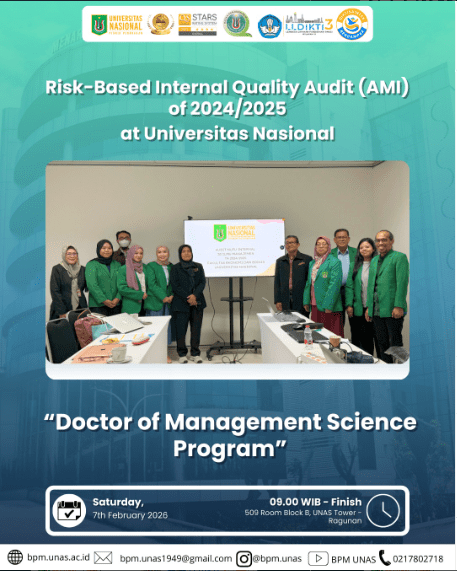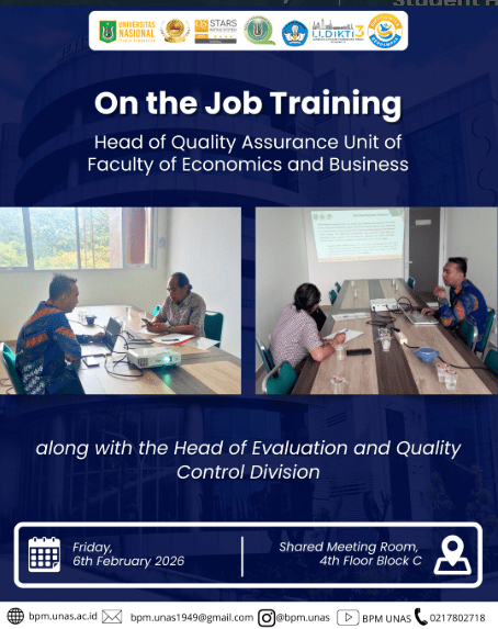 Day/Date : Saturday, 7th February 2026 Time : 09.00 WIB Place : Faculty of Communication Technology and Informatics Meeting Room 2nd Floor Block D #unas1949 #universitasnasional #pionirperubahan #bpm #badanpenjaminanmutu #badanpenjaminanmutuunas