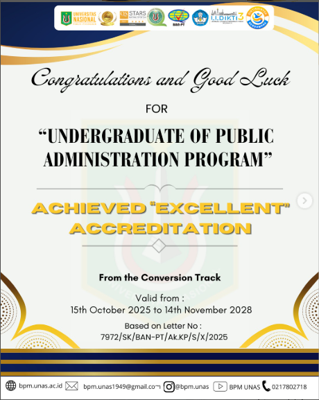 “UNDERGRADUATE OF TOURISM PROGRAM” Faculty of Economics and Business, Universitas Nasional has achieved “VERY GOOD” Accredited through the Conversion Track Based on Latter on : 7954/SK/BAN-PT/Ak.KP/S/X/2025 Selamat dan Sukses untuk